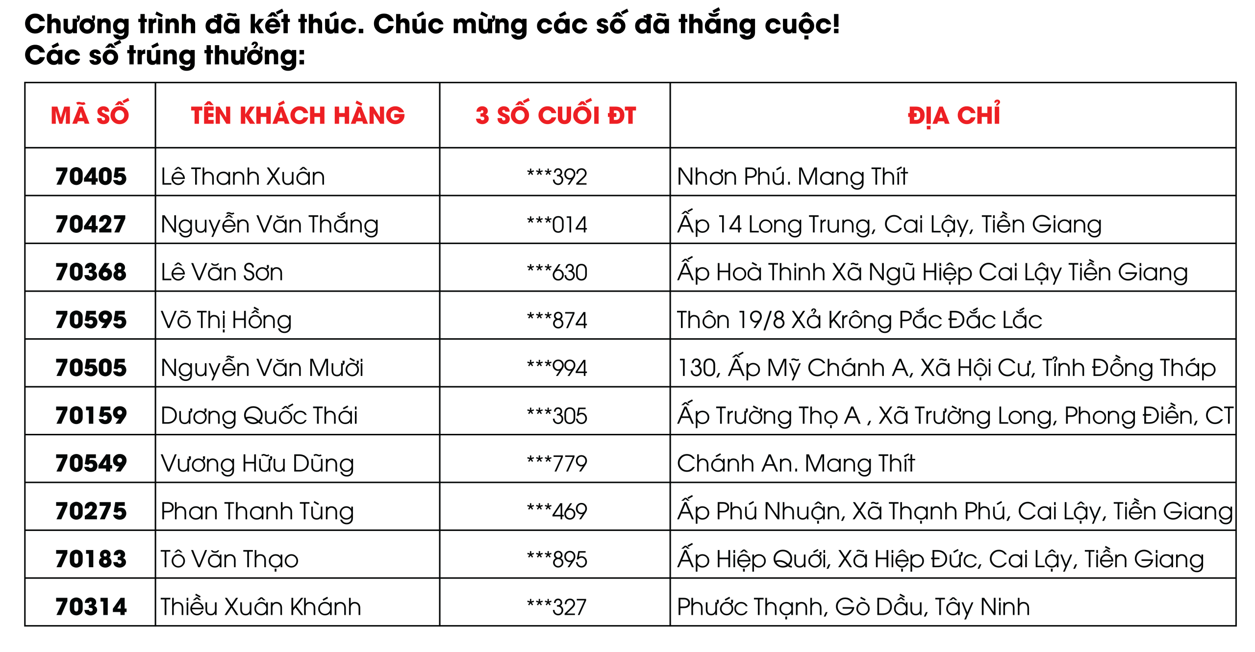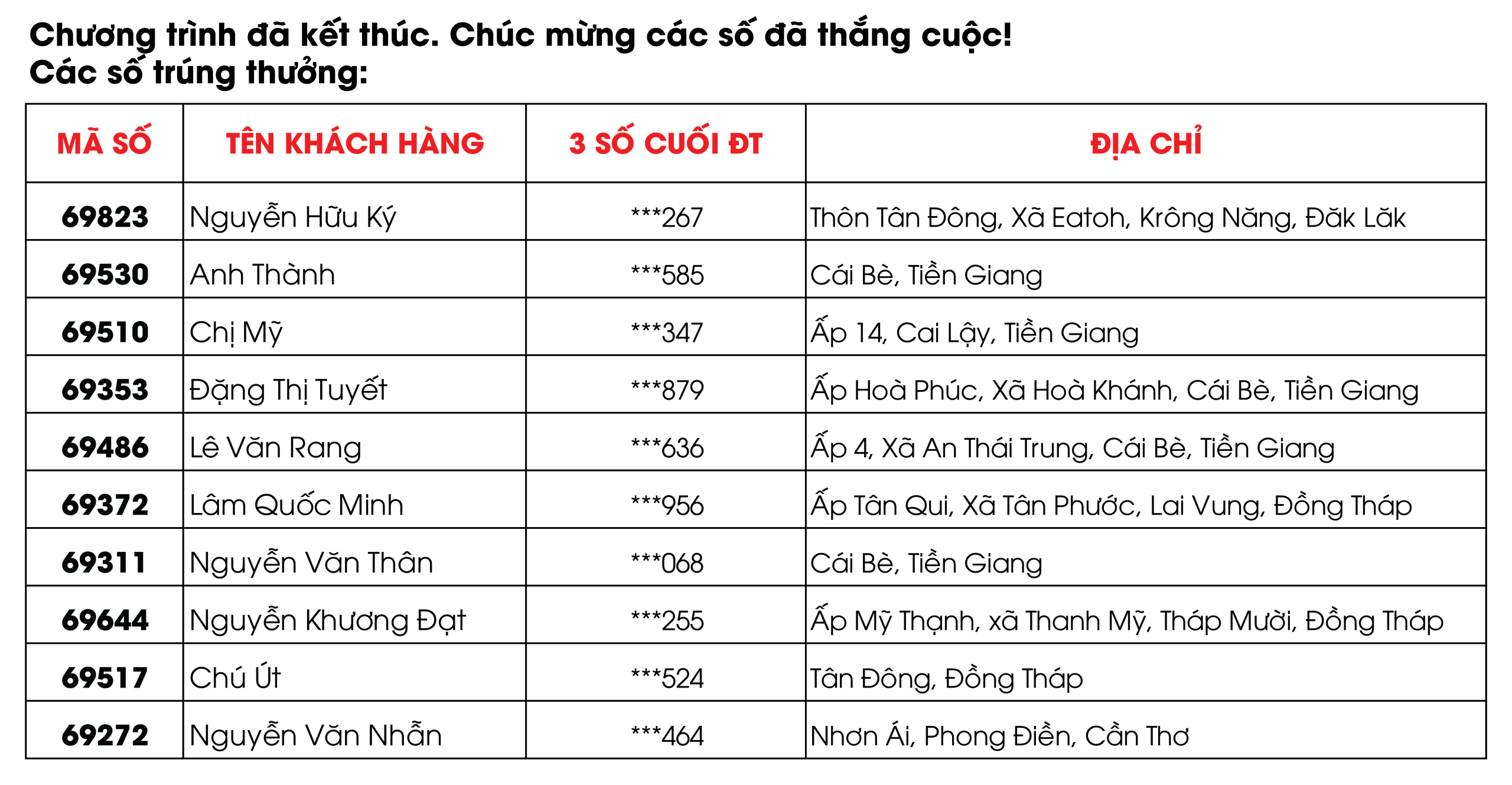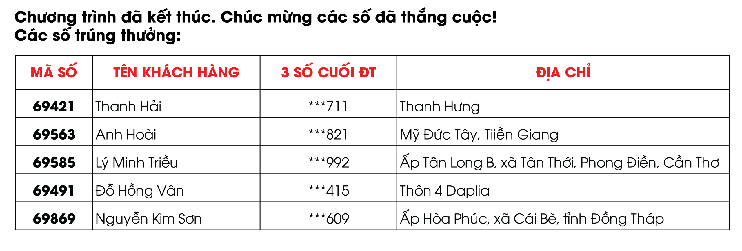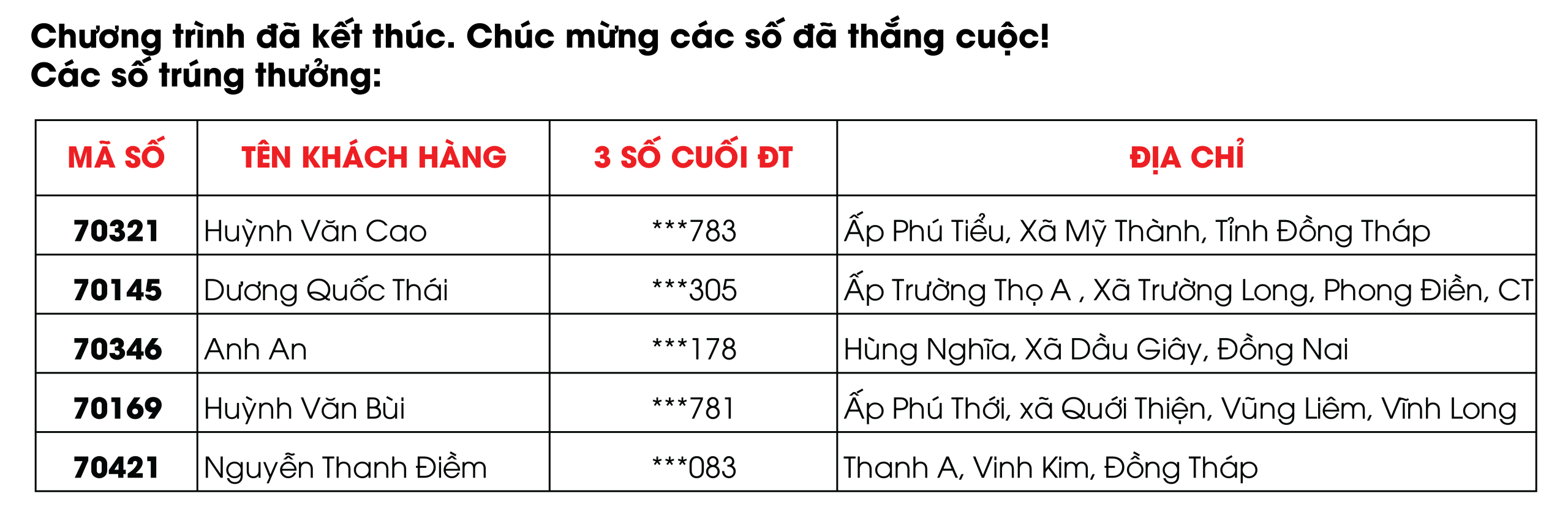 15 GIẢI BA – MỖI GIẢI 01 NỒI CƠM ĐIỆN 1.8 LÍT