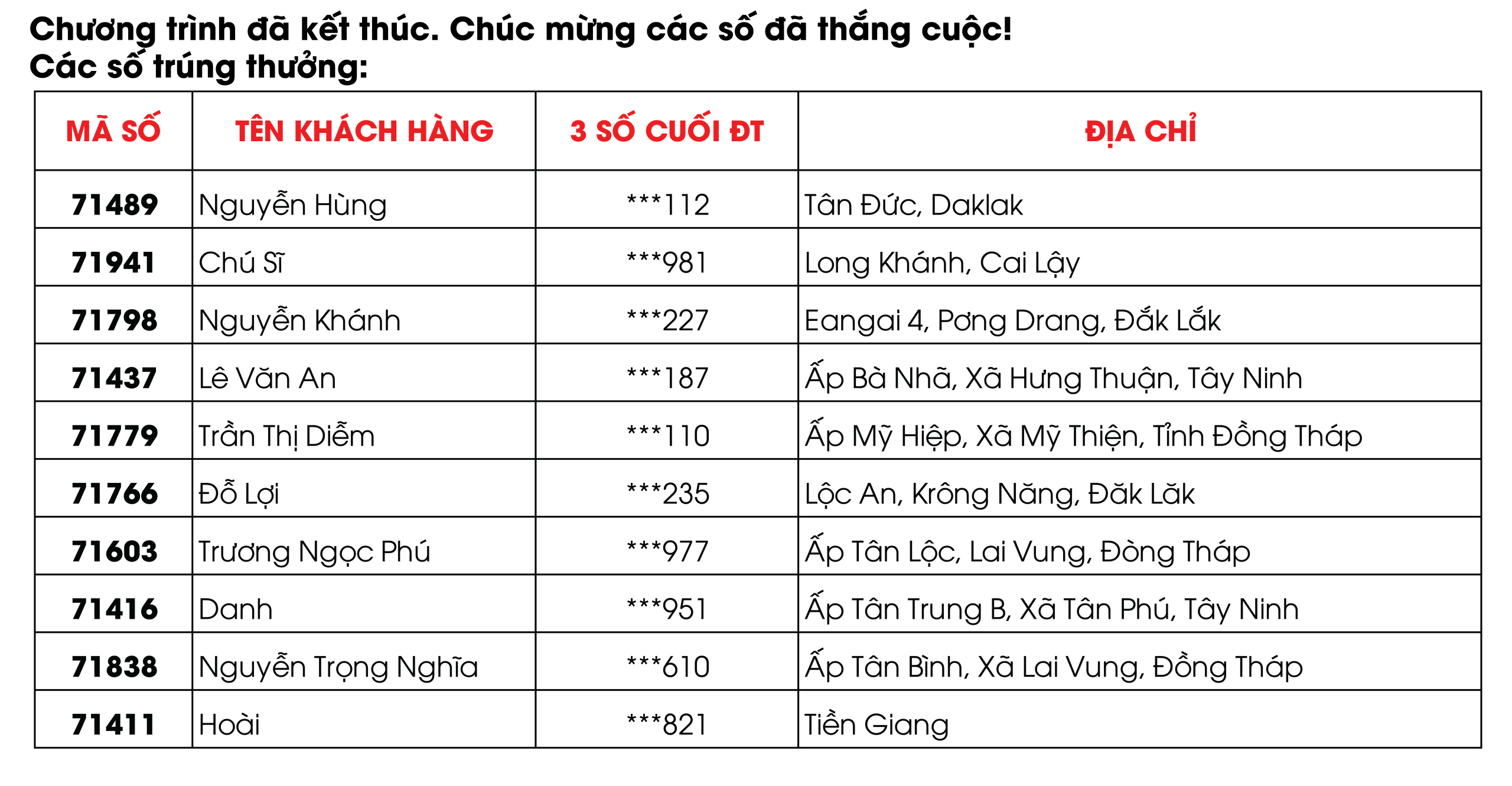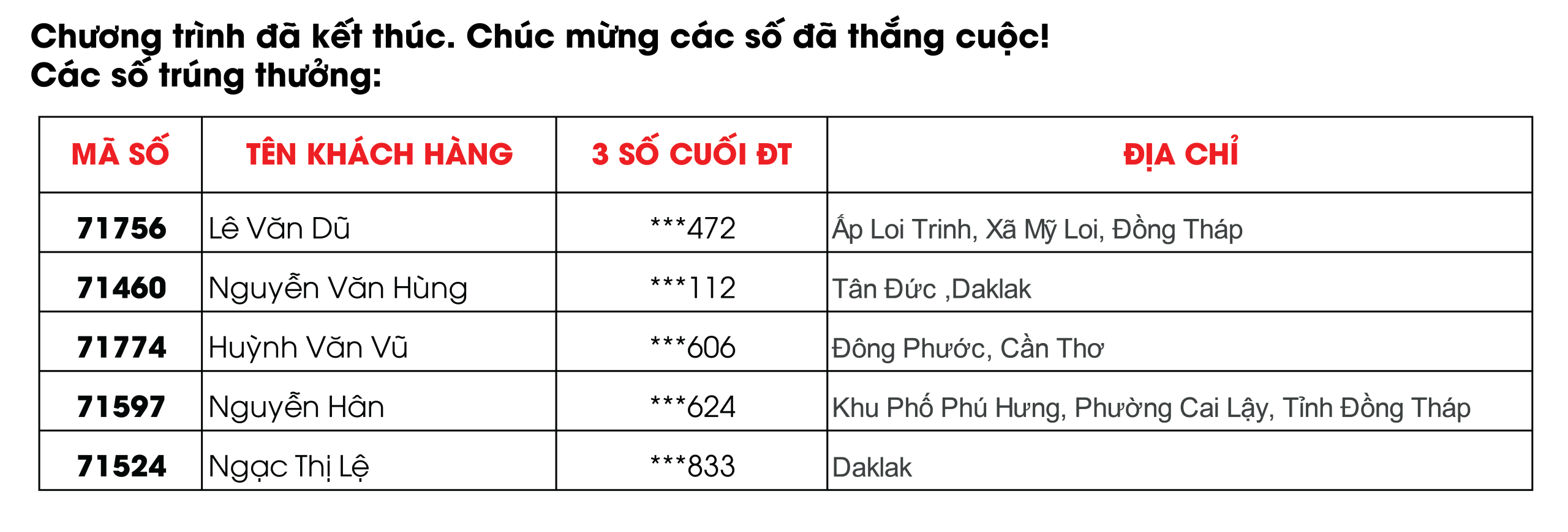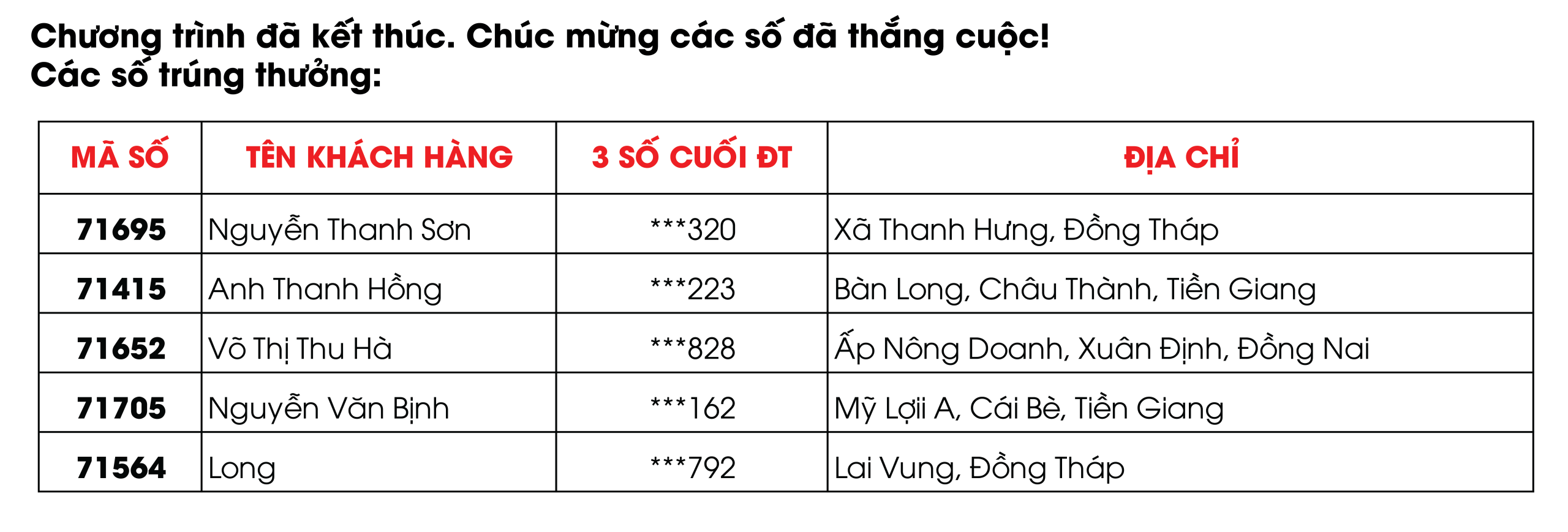 15 GIẢI BA – MỖI GIẢI 01 NỒI CƠM ĐIỆN 1.8 LÍT